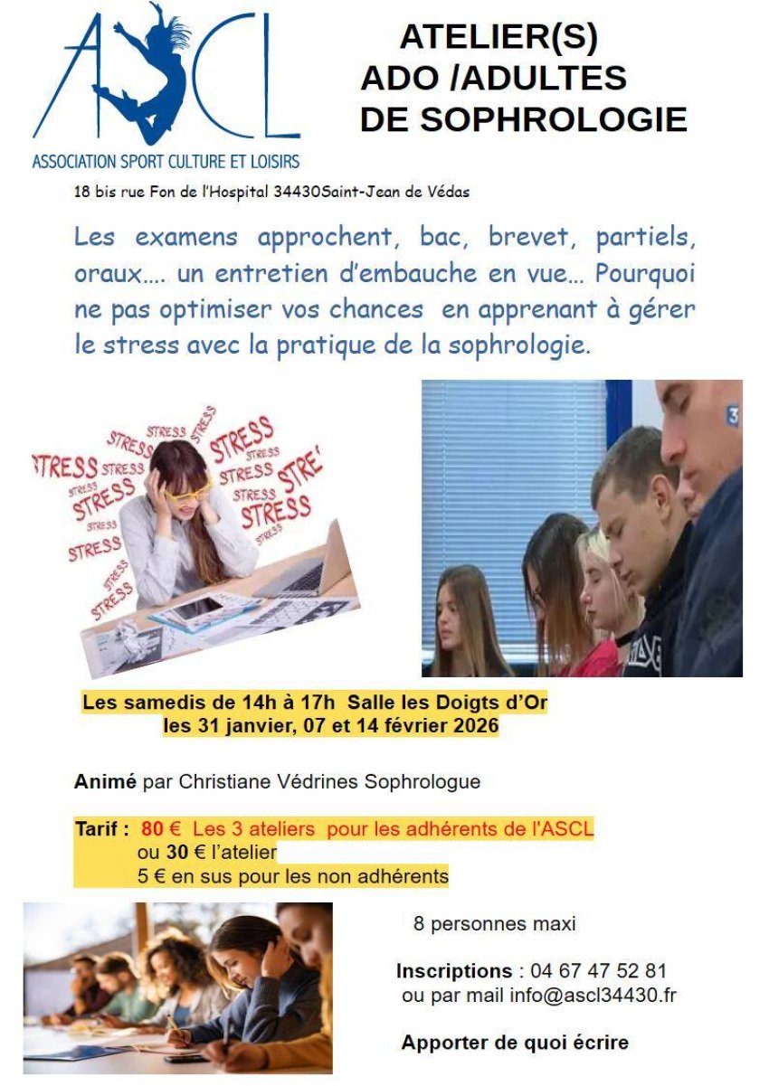 Samedi 31 janvier, l’ASCL organise un stage de sophrologie de 14h à 17h.