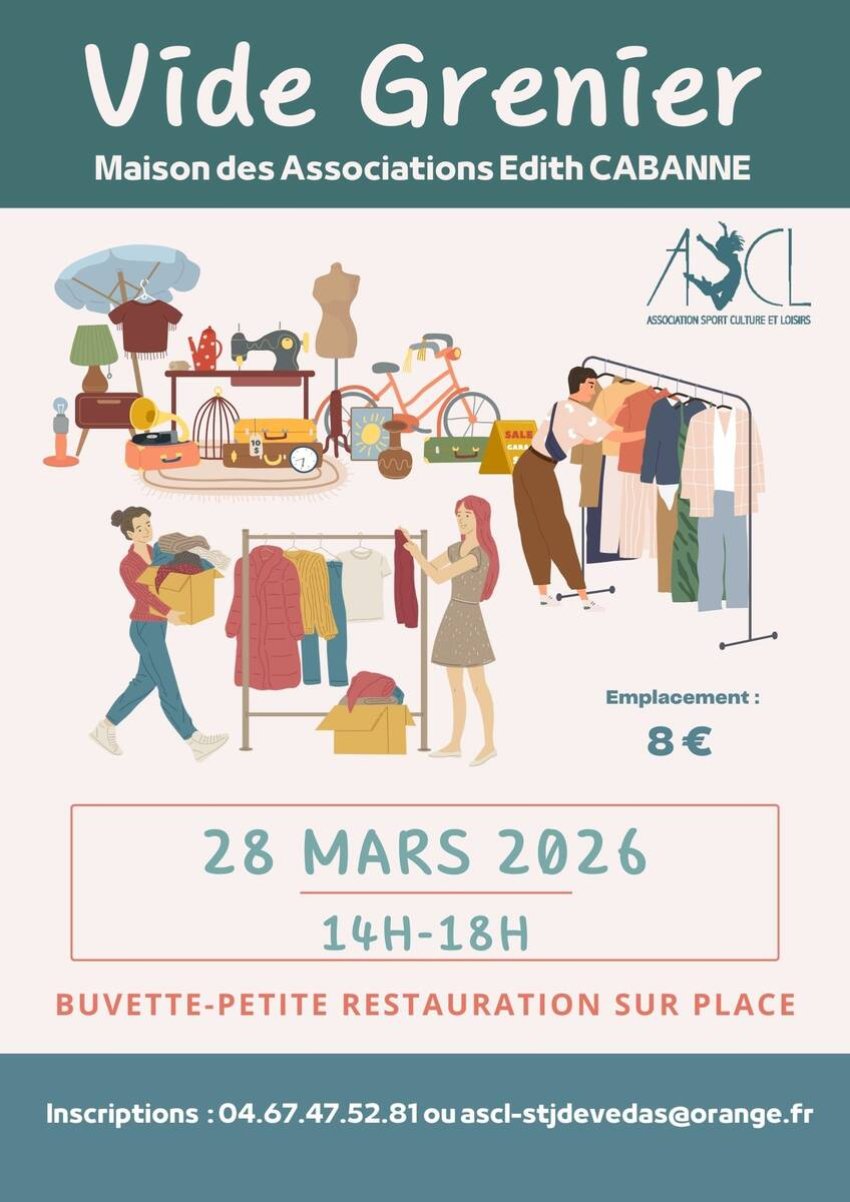 L’ASCL organise un vide grenier le 28 mars 2026 de 14h à 18h.
